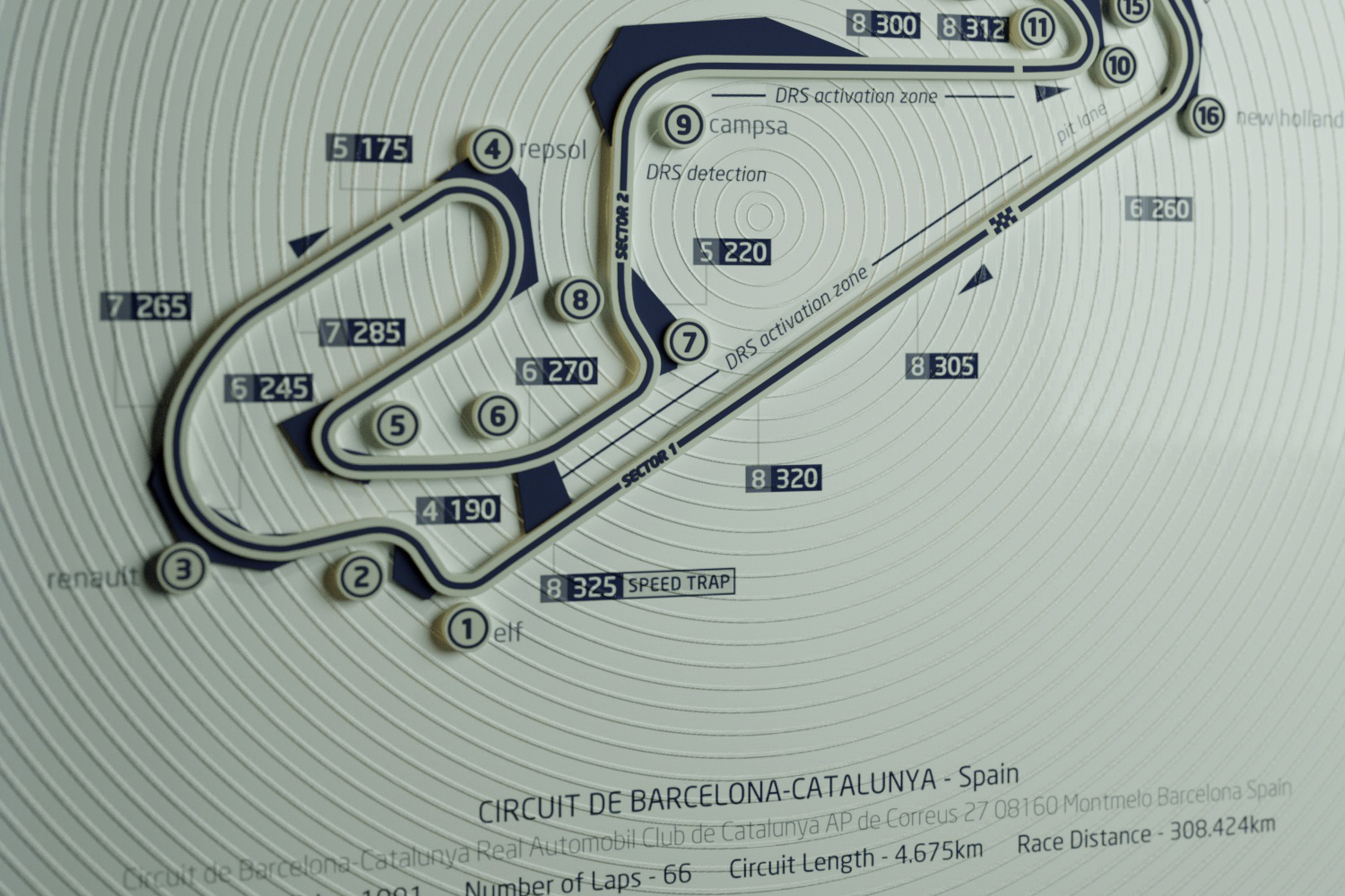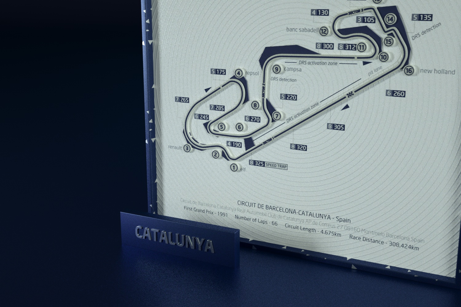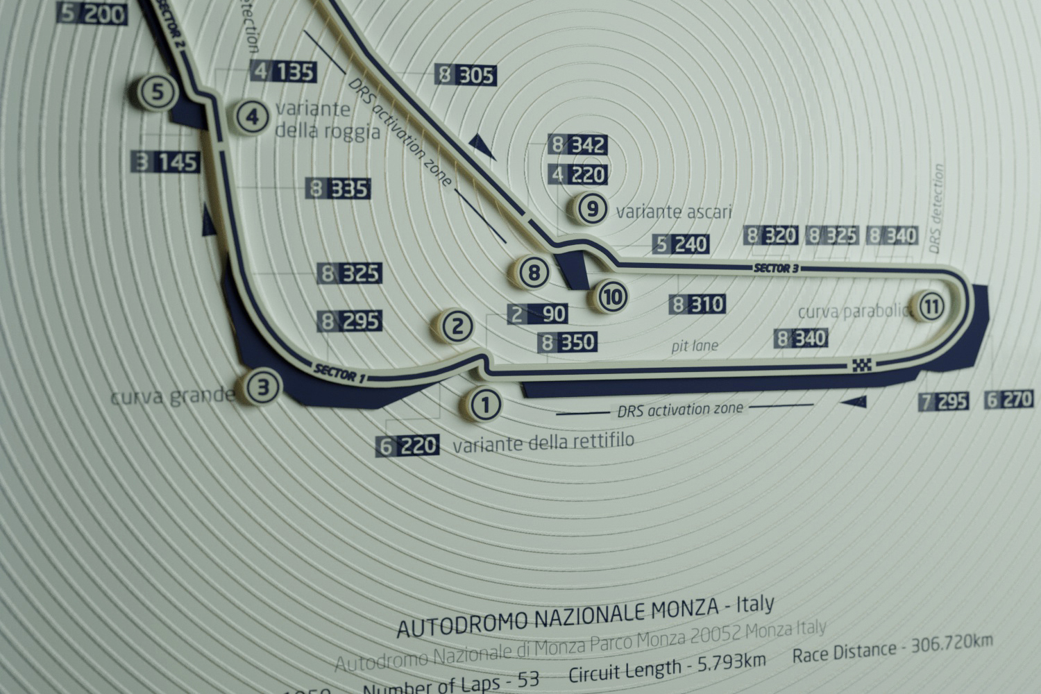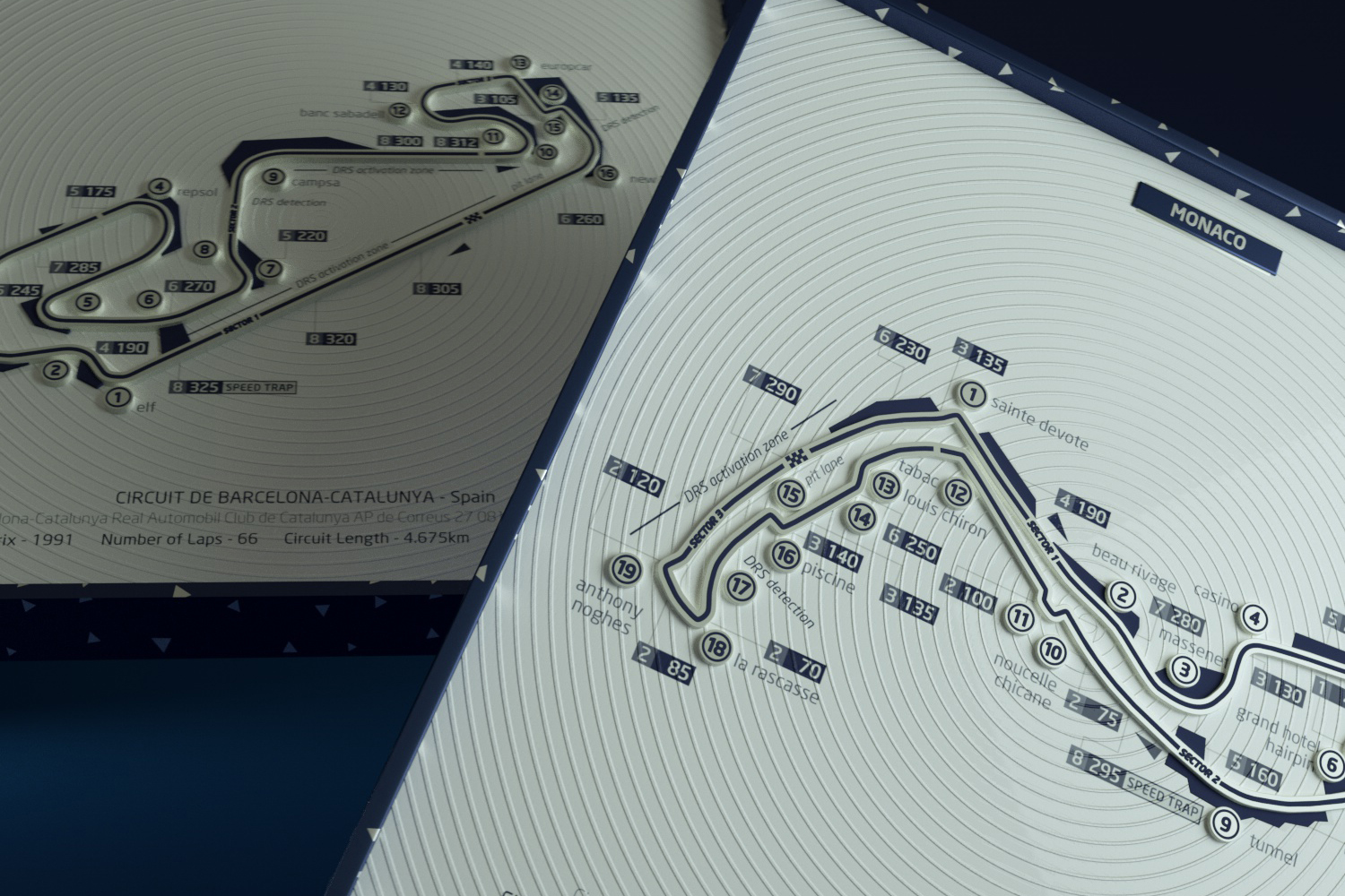 In the F1 racetrack art design, we have incorporated intricate track information and multi-level textures. This includes Italy’s Monza circuit, Spain’s Catalunya circuit, the UK’s Silverstone track, and Monaco’s Monte Carlo circuit.
