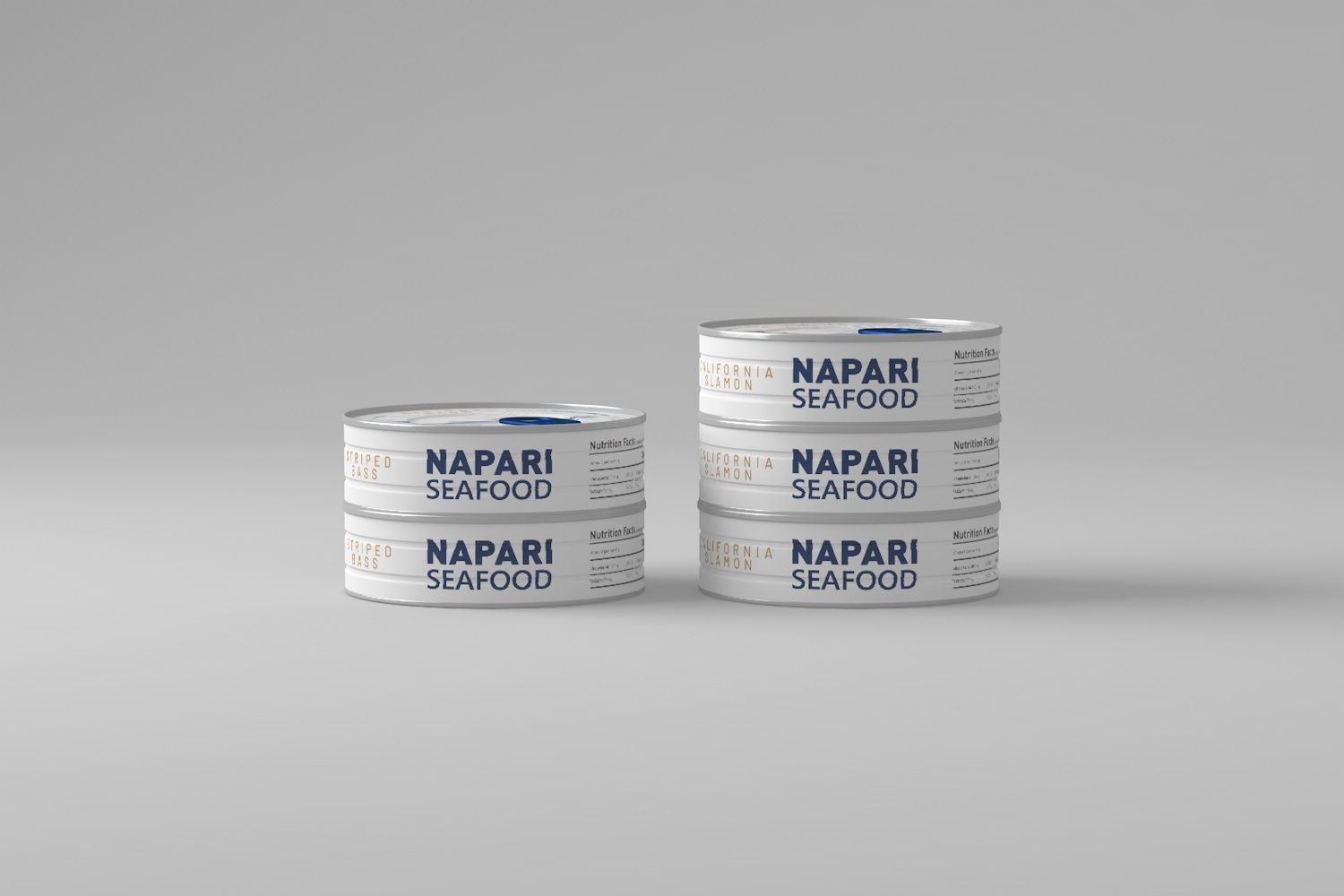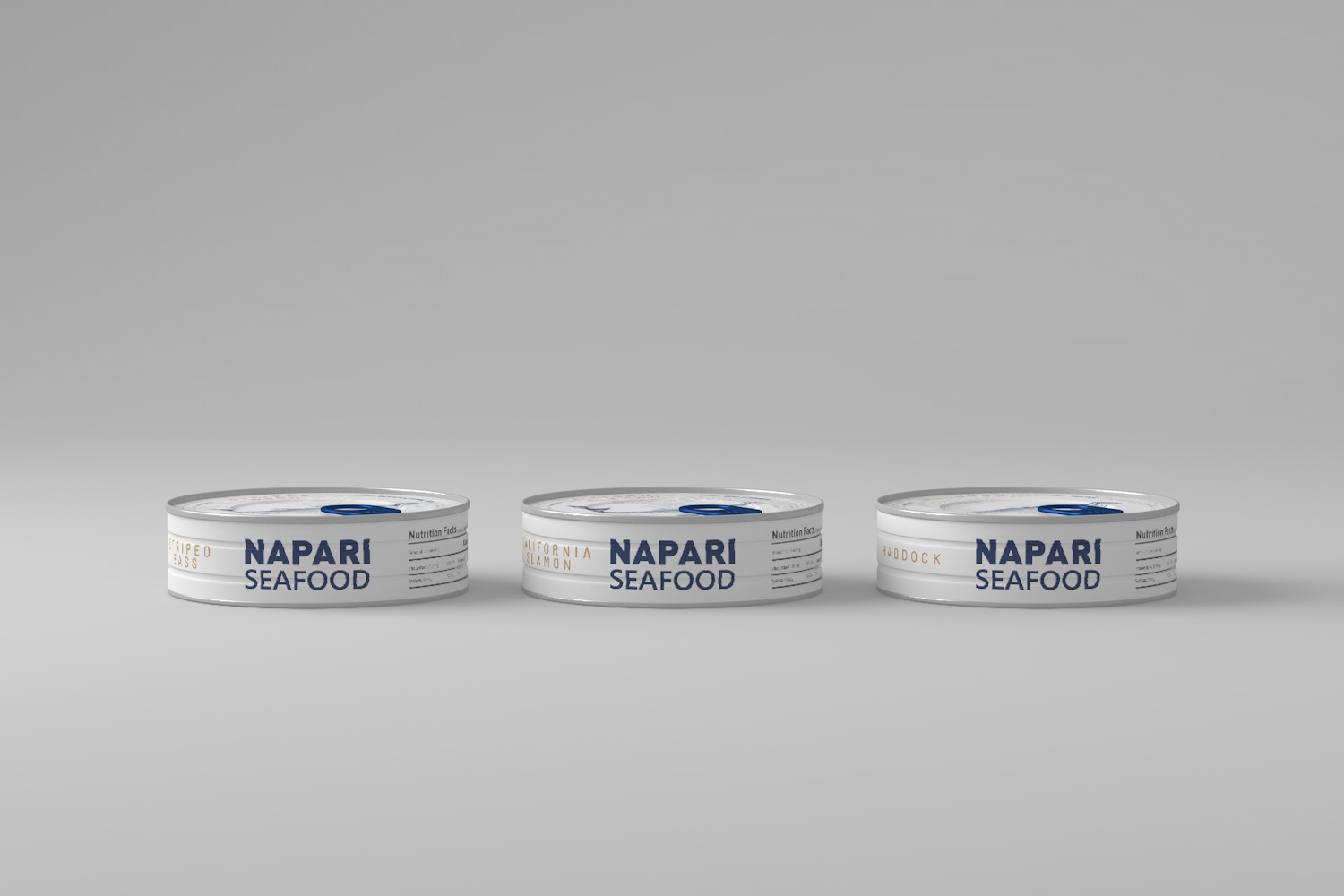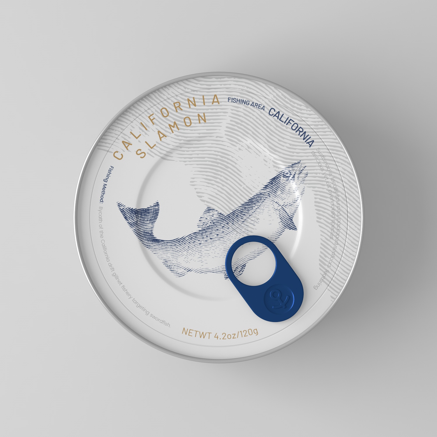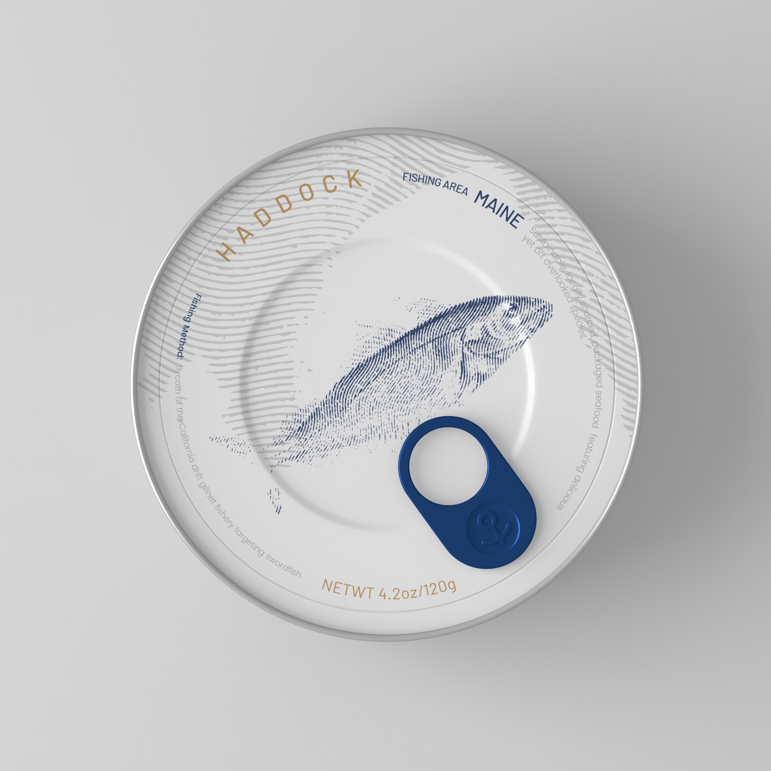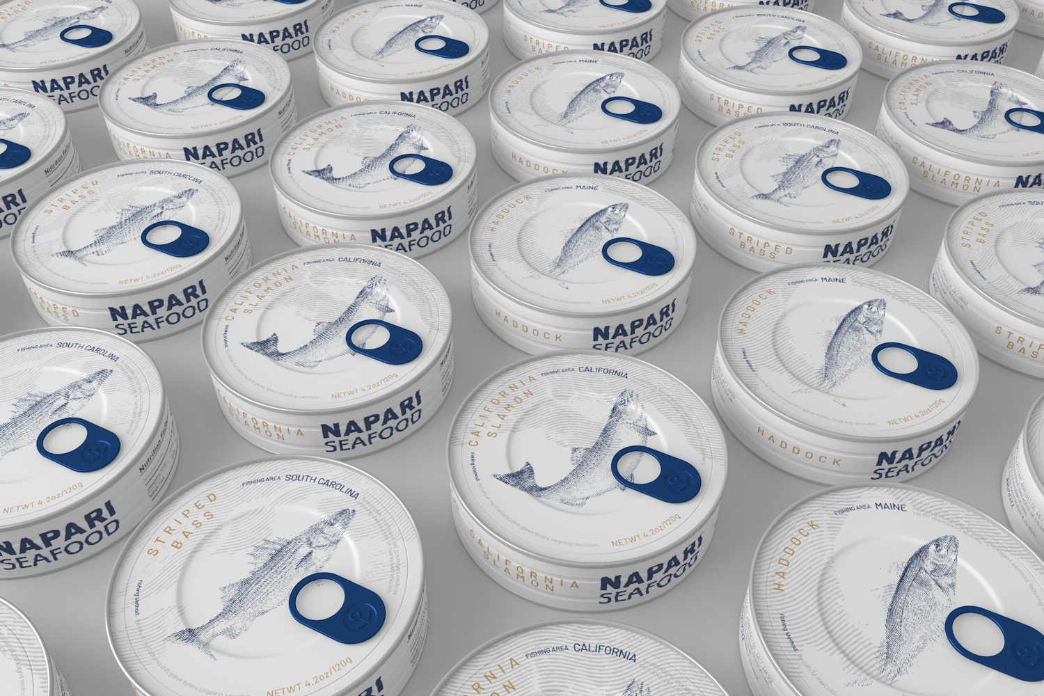 For canned packaging design, we used textured illustrations to depict these fish, and their habitat, the bay, is also represented on the packaging.